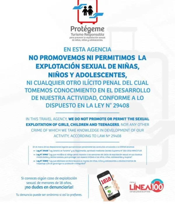 Peru Travel Advisor reafirma su compromiso con el cumplimiento de esta legislación, adoptando prácticas responsables y sostenibles que garanticen el respeto por las normas vigentes y contribuyan al desarrollo ético y equilibrado del turismo en el Perú.